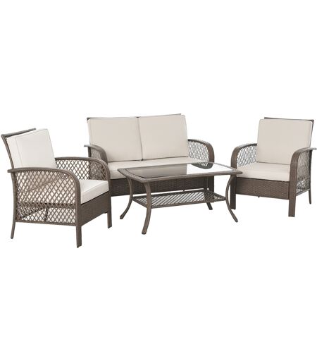 Outsunny Set Mobili da Giardino Rattan Marrone, Tavolino + Sedie + Divano 4Pz, Cuscini Imbottiti Cachi, Stile Elegante Aosom