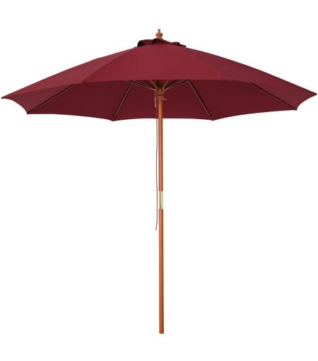Outsunny Ombrellone da Giardino in Legno con Tettuccio Antivento Rosso -