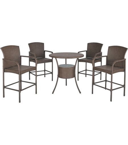 Outsunny Set Relax Giardino 5 Pezzi: Tavolino 4 Sedie Alte in Rattan Sintetico, Secchiello Ghiaccio Integrato, Arredo Esterno Elegante - Marrone Aosom
