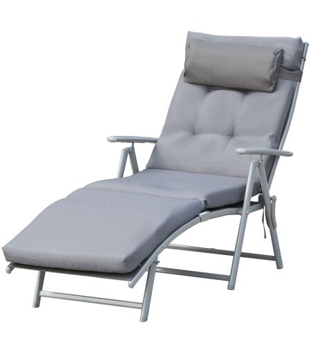 Outsunny Sdraio da Giardino Pieghevole con Materassino e Cuscino, Schienale con 7 Reclinazioni, 137x63.5x100.5cm, Grigio Aosom