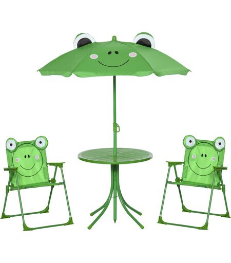 Descrizione: Il set tavolo da giardino con sedie per bambini Outsunny crea uno spazio su misura per far giocare i bimbi all'aperto. È incluso un ombrellone coordinato per offrire una fresca zona d'ombra sopra al tavolino. Il design colorato a forma di rana porta allegria in giardino: i tuoi bambini non vorranno farne a meno! Caratteristiche: ● Solida struttura tubolare in metallo che garantisce sicurezza di utilizzo ● 2 sedie per divertirsi in compagnia ● Ideale da usare in giardino, sul balcone, in terrazza, ecc. ● Colore allegro con disegno a rana ● Set leggero da trasportare ● Sedie e ombrellone pieghevoli ● Montaggio richiesto Dati tecnici: ● Colore: Verde ● Materiale: Metallo, Poliestere ● Dimensioni tavolo: 50L x 50P x 46Acm ● Dimensioni sedia: 39L x 38P x 52Acm ● Dimensioni ombrellone a 6 stecche: Ф100L x 125Acm ● Dimensione piegata: 51L x 39P x 6.2Acm (sedia) ● Altezza seduta: 28cm ● Altezza schienale: 52cm ● Capacità di peso: 35kg (sedia), 20kg (tavolo) ● Certificazioni: ...