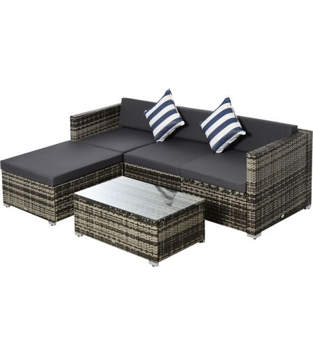 Outsunny Mobili da Giardino in Rattan PE Set Salotto da 5 Pezzi, Divanetto per Esterni con Pouf e Tavolino, Grigio Aosom Italy Aosom