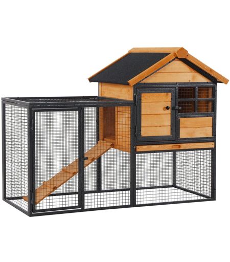 Regala ai tuoi conigli un habitat confortevole con la conigliera PawHut. Con la sua combinazione di legno e metallo, questa gabbia per conigli offre ai tuoi animali sicurezza e comodità. È presente una casetta per conigli accogliente e un pratico spazio all'aperto per lasciare gli animali liberi di muoversi. Una rampa interna facilita il passaggio dalla casetta alla zona esterna. Le porte con blocco ti permettono di accedere facilmente alla gabbia e tenere al sicuro i tuoi piccoli amici. ...