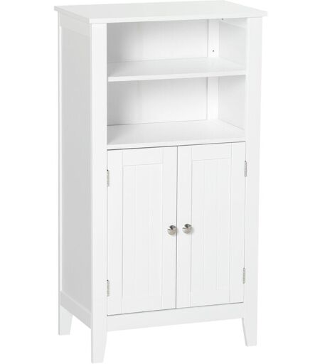 KLEANKIN Mobile Bagno con Armadietto 2 Ante in Legno Bianco e Mensole Regolabili -