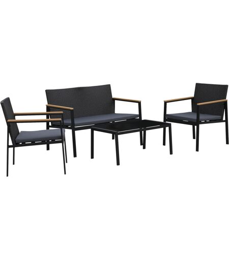Outsunny Set 4 Pezzi Salotto da Esterni con 2 Sedie, Divano e Tavolino Mobili da Giardino in Rattan e Acciaio Nero Aosom