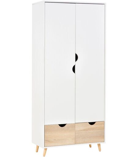 HOMCOM Armadio a Due Ante in Legno con 1 Ripiano e 2 Cassetti, Bianco