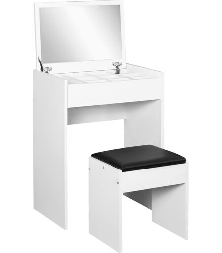 Homcom Tavolo da toletta con specchio retrattile sgabello contenitore 9 moderno in pannello truciolare bianco nero 60.2 x40.2 x 79cm Aosom