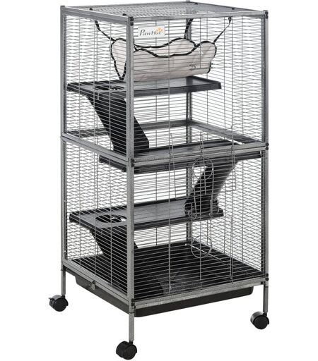 PawHut Gabbia in Acciaio per Roditori con 3 Piani e 4 Ruote -