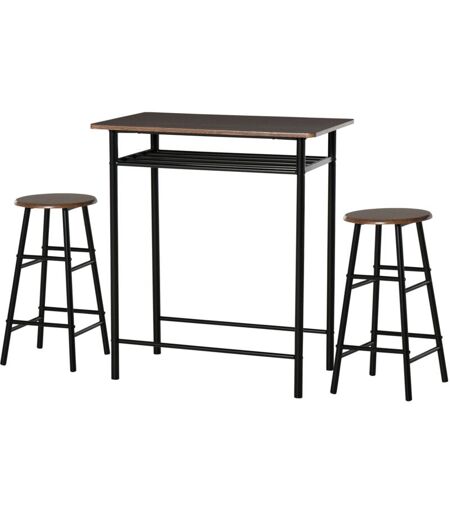 HOMCOM - Set Tavolo Alto 2 Sgabelli per Cucina Sala Bar, Poggiapiedi e Mensola