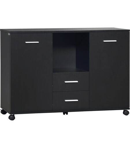 Vinsetto Mobile Ufficio Multifunzionale con 4 Ruote Pratico Armadietto con 2 Ante e 2 Cassetti per Stampante Scanner Fax 100x40x71cm Nero Aosom