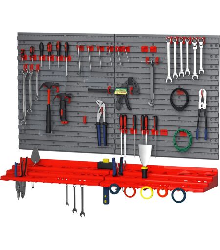Durhand 54PZ Contenitore Portautensile con 50 Ganci, Montaggio a Muro, PP, Rosso Grigo, 95.5x23x53.5cm Aosom