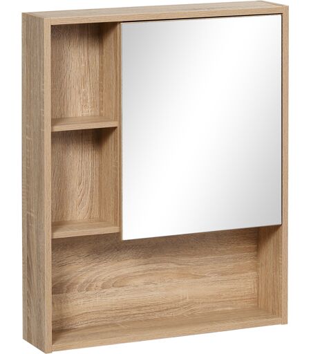 Kleankin Armadietto a specchio per bagno con scaffale regolabile, montaggio a muro, color rovere, 60 x 15 x 76cm Aosom