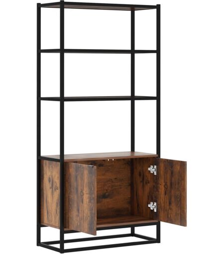 HOMCOM - Scaffale Libreria a Muro con Ante e 3 Ripiani in Legno e Metallo Nero