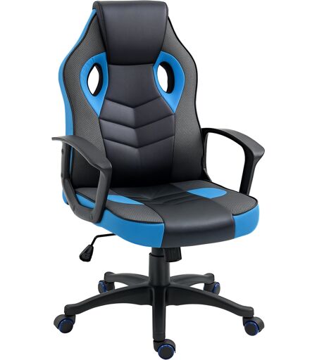 Vinsetto Sedia Gaming Ergonomica, Poltrona da Ufficio Girevole con Rotelle in Pelle PU Nera e Blu, Altezza Regolabile