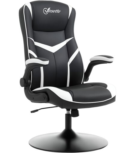 Vinsetto Sedia Poltrona Gaming da Ufficio Ergonomica, Altezza Regolabile, Base Fissa, Braccioli Pieghevoli Aosom Sedie Ufficio Nero e Bianco Aosom
