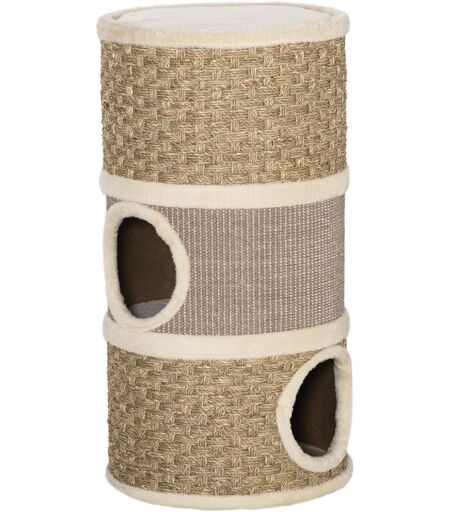 La casetta per gatti PawHut con 3 cucce e copertura in sisal e corda in alga marina è il posto ideale per il tuo gatto in cui riposarsi. Dotata di 3 nicchie, di cui 2 sono collegate fra loro e sono ideali per soddisfare la voglia del gatto di nascondersi. Grazie al ripiano esterno superiore il gatto può tenere sotto controllo tutto ciò che lo circonda mentre sonnecchia su una morbida superficie. Una cuccia per gatti e tiragraffi a torre perfetta per la tua casa e da regalare ai tuoi piccoli amici a 4 zampe! ...