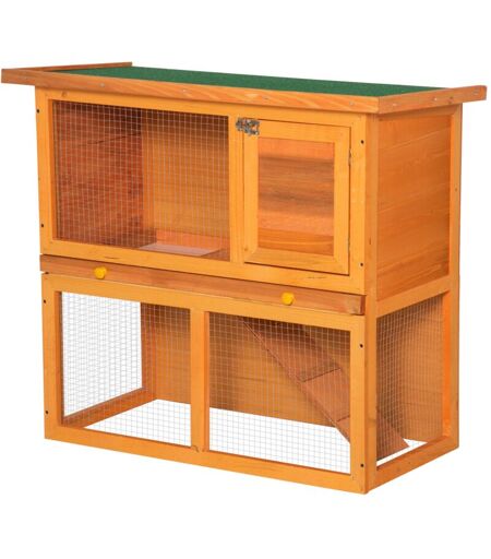 PawHut Gabbia a Due Piani per Conigli, Conigliera da Esterno in Legno -