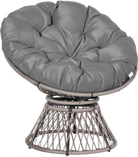 Outsunny Poltrona Sedia Papasan Girevole a 360° con Cuscino Giardino Rattan 87 × 97 × 90cm Nero