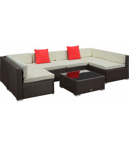Outsunny Salotto da Giardino in Rattan da 7 Pezzi con Tavolino e Divano Modulabile Set Divani da Giardino con Cuscini, Crema Aosom