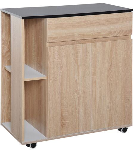 Homcom Carrello da Cucina con Cassetto, Armadietto e 2 Mensole Laterali, Mobile Cucina con Ruote in Legno, 78x39.5x88.5cm, Rovere e Nero Aosom Italy