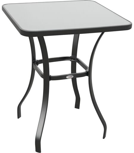 Outsunny Tavolino da Giardino in Metallo Nero, Piano in Vetro Temperato, Design Elegante, 68.5x68.5x84cm - Perfetto per Esterni Aosom