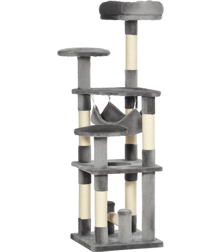 Pawhut Albero Tiragraffi per Gatti a 4 Livelli con Amaca Cuccia Piattaforme Peluche Sisal Naturale Altezza 132cm Grigio Aosom