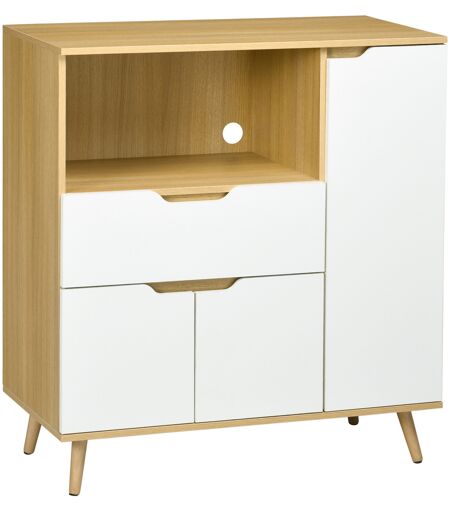 Homcom Mobiletto per Microonde con Foro Passacavi, Due Armadietti e Un Cassetto, 90x40x98.5cm, Bianco e Color Legno Aosom Italy