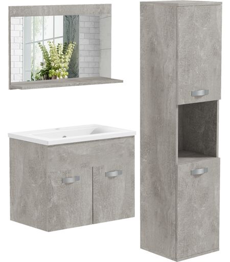 Kleankin Set Mobili Bagno con Mobile Lavabo 60cm e Lavandino in Ceramica, Colonna Bagno e Specchiera, Grigio Aosom