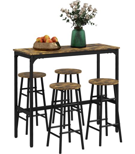 Homcom Set Tavolo e Sedie 5 Pezzi con 4 Sgabelli con Poggiapiedi e Tavolo Rettangolare, Nero e Marrone Aosom