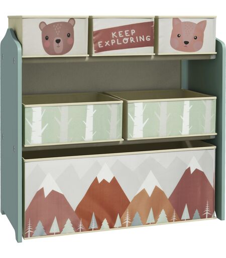 Zonekiz Scaffale Portagiochi per Bambini con 6 Contenitori Rimovibili in Tessuto, 63x30x66cm, Verde Aosom