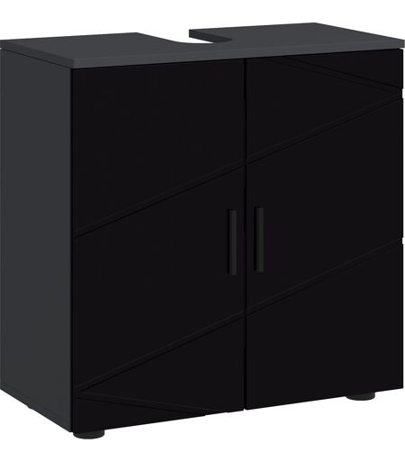 Kleankin Mobile Sottolavabo Bagno in Legno con Armadietto 2 Ante, 60x30x60cm, Nero Aosom