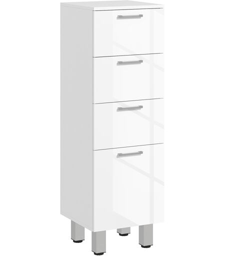Kleankin Mobiletto Bagno in Truciolato con 4 Cassetti e Base Rialzata, 30x30x93 cm, Bianco Aosom