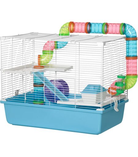 PawHut Gabbia per Criceti con Giochi Tunnel e Casetta Azzurra e Bianca -