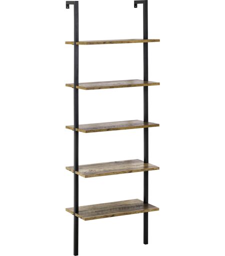 Homcom Libreria Moderna a Scala con 5 Ripiani e Dispositivo Antiribaltamento, Design a Muro, in Legno e Metallo, 60x30x184.5 cm, Marrone Aosom Italy