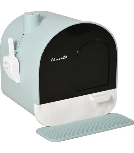 Pawhut Lettiera per Gatti Chiusa con Filtri, Paletta e Vassoio Removibile, Struttura in PP, 43x44x47cm, Verde Aosom