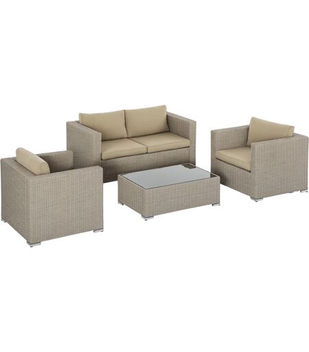 Outsunny Set Mobili da Giardino 4 Pezzi in Rattan PE, Salotto da Esterno 1 Divano, 2 Poltrone, 1 Tavolino e Cuscini Lavabili, Kaki e Beige Aosom