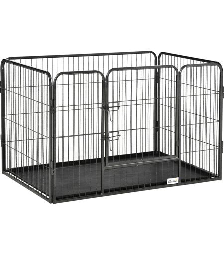 Pawhut Box per Cani Recinzione in Metallo per Animali con 4 Pannelli, Porta con Doppio Blocco e Vassoio sul Fondo, 109x74x71cm, Grigio Aosom