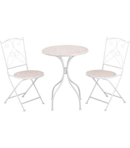 Outsunny Set da Giardino 3 Pezzi, Design a Mosaico, 2 Sedie Pieghevoli e Tavolino Rotondo, in Metallo e Ceramica, Bianco Aosom