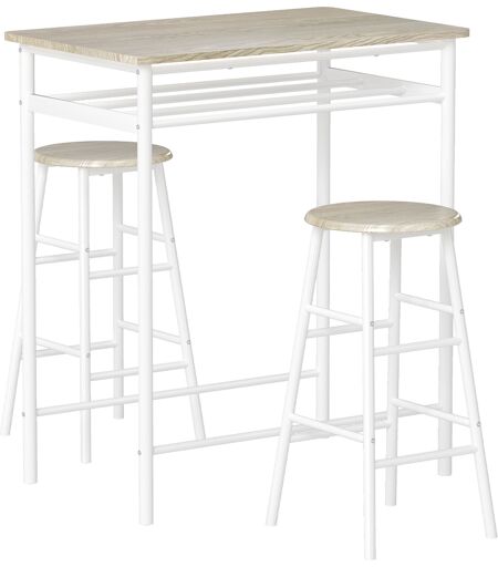 Homcom Set Tavolo Alto Bar con 2 Sgabelli Alti in Legno Stile Nordico, con Mensola e Sgabelli Cucina con Poggiapiedi, Bianco Aosom Italy