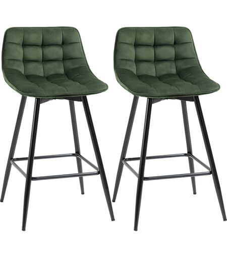 Homcom Set 2 Sgabelli da Bar con Schienale e Poggiapiedi Stile Nordico in Metallo e Velluto, Verde, 45x47x88cm Aosom