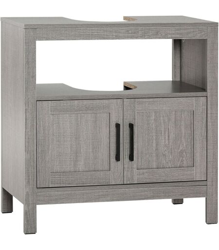 KLEANKIN Mobile Bagno Sottolavabo con Armadietto e Ripiani in Legno Grigio -