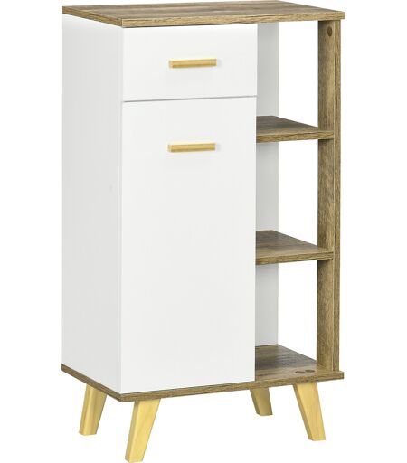 Kleankin Mobile Bagno Moderno con Armadietto ,Mobile con Multiuso Cassetto e Ripiani in Legno, 50x30x89cm, Bianco Aosom Italy
