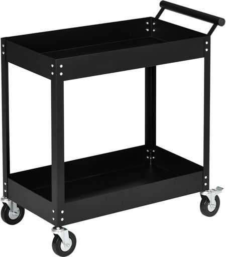 Durhand Carrello Porta Attrezzi a 2 Ripiani in Acciaio, 84.5x38x84cm, Nero Aosom
