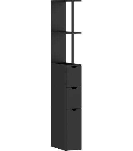 Homcom Mobile Colonna Salvaspazio in Legno con Ripiani, Armadietto e Cassetti, Nero, 15x33x136cm Aosom