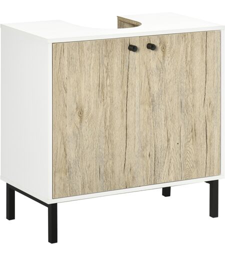 Kleankin Mobile Bagno Sotto Lavabo a 2 Ante con Ripiano Interno in Truciolato e Acciaio, 60x30x60 cm, Bianco e Rovere Aosom