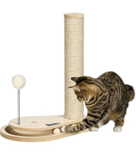 Pawhut Tiragraffi per Gatti da 4kg max in Truciolato e Iuta con Palline da Gioco Incluse, 35x23x40 cm, color Rovere Aosom