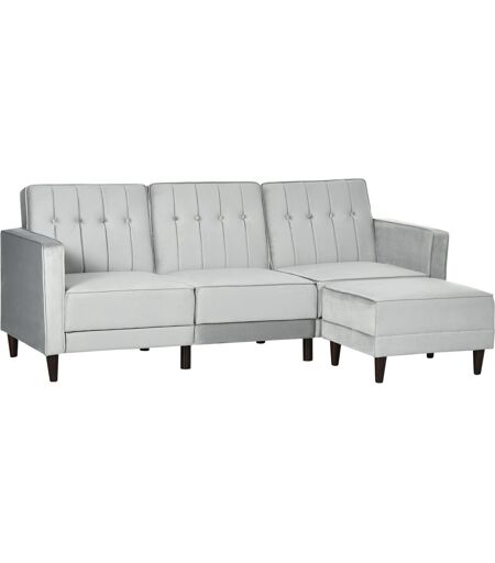 Homcom Divano Letto 3 Posti con Poggiapiedi e Schienale Reclinabile, Rivestimento Velluto e Seduta Imbottita, 218x85x86 cm, Grigio Chiaro Aosom
