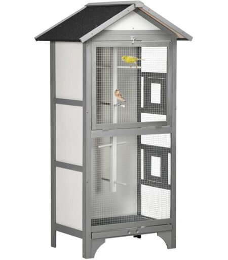 PawHut Voliera in Legno per Uccellini, 4 Posatoi Vassoio Rimovibile 3 Aperture -