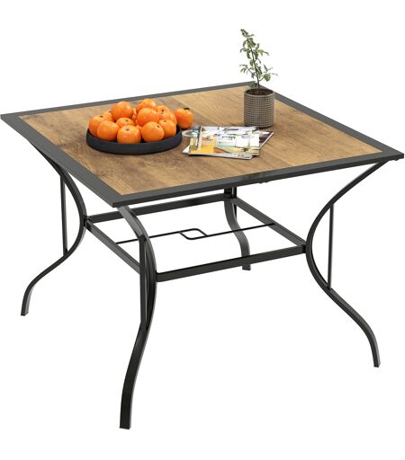 Outsunny Tavolo da Giardino Marrone per 4 Persone con Foro Centrale per Ombrellone, 94L x 94P x 71A cm Aosom