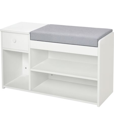 Homcom Panca Scarpiera con 3 Vani Aperti, Cuscino e Cassetto, Struttura robusta in legno truciolare, 81x31.5x49cm, Bianco Aosom Italy